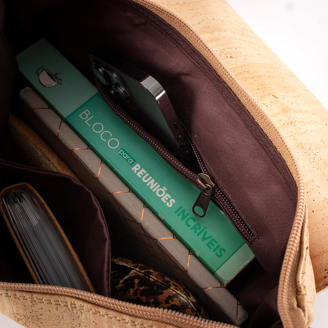 Sac a main liège bandoulier compartiment pour téléphone intérieur, compartiment intérieur avec fermeture  pochette extérieur derrière  avec fermeture.