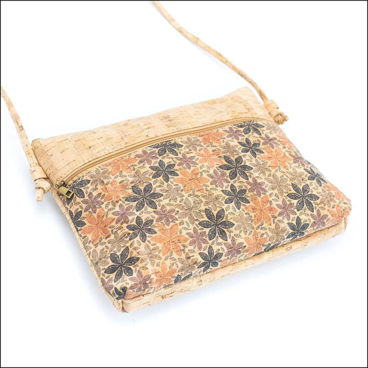 Sur le devant, un magnifique motif coloré, orné de liège naturel rustique sur le dessus, s’accorde avec la plupart des tenues.