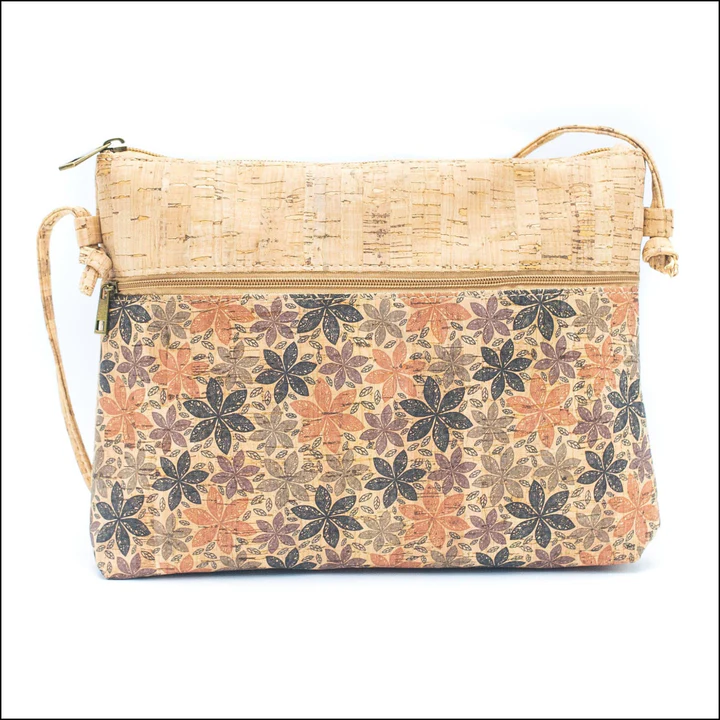 Un sac structuré en liège avec une poche zippée pour transporter vos petits objets du quotidien.